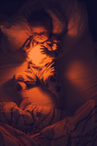 Luna is a portable, touch-activated night lamp designed to create a calm, non-stimulating environment during nighttime care. Its narrow-spectrum orange light avoids blue and green wavelengths, helping both parent and baby fall back asleep faster.